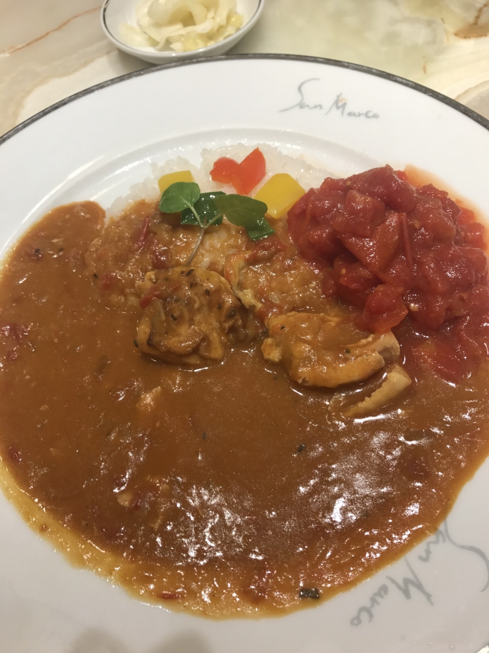 高島屋の地下にあるカレー屋さん。テイクアウトも出来ます。今回はトマトとチキンカレーを注文しました。全く辛くなくチキンは2かけ。カレーは飲み物!をしみじみ感じました。辛さは備え付けのソースで調整するようです。メニューはオムライスやハヤシもありました。綺麗に作ってあり安心感はありますが値段とのバランスはどうなのかしら