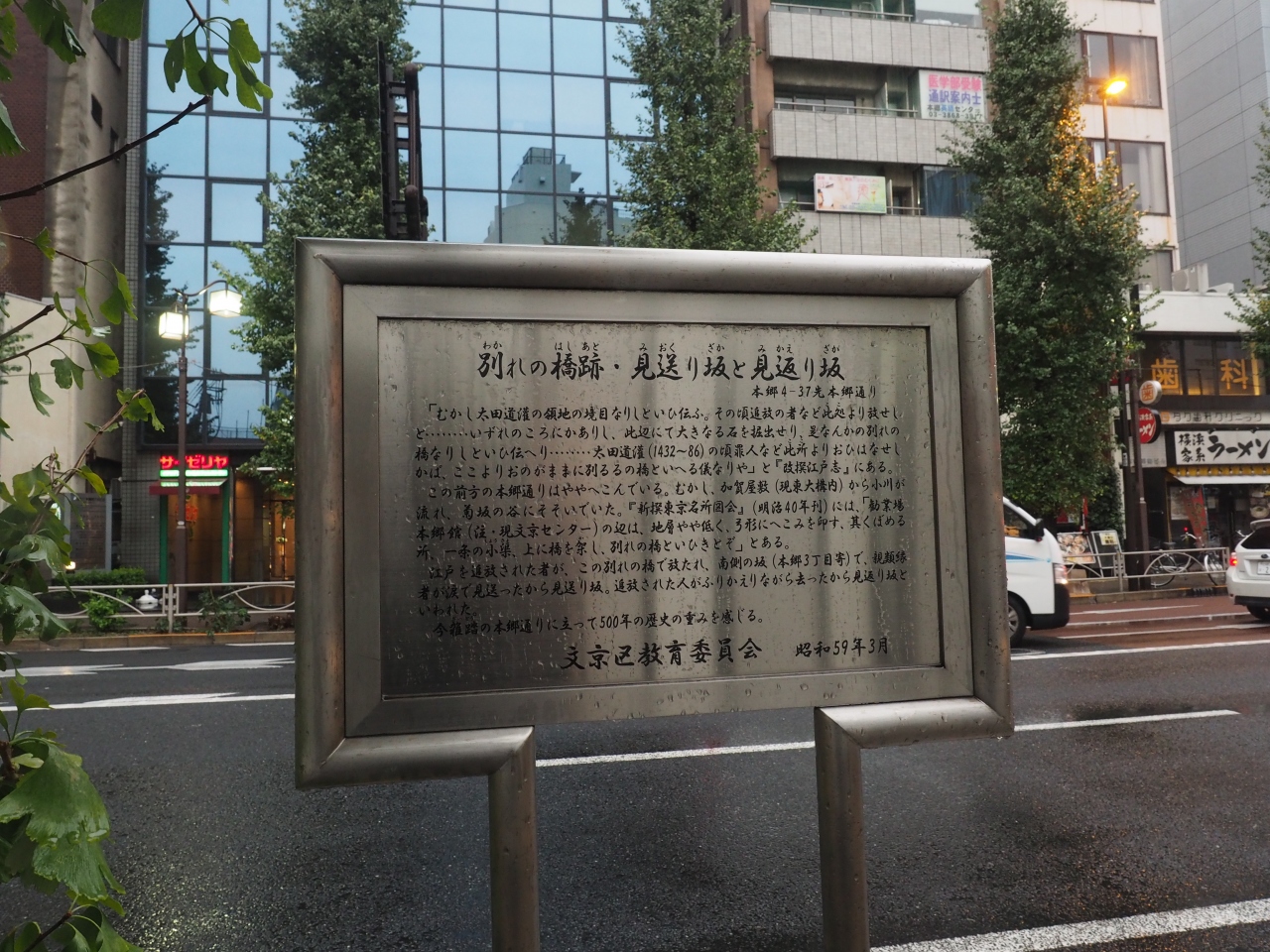 本郷三丁目交差点から少し離れた場所に写真のような立て看板が立っています。学生さんをはじめとする人通りが多い場所なので注意していないと見逃しそうです。