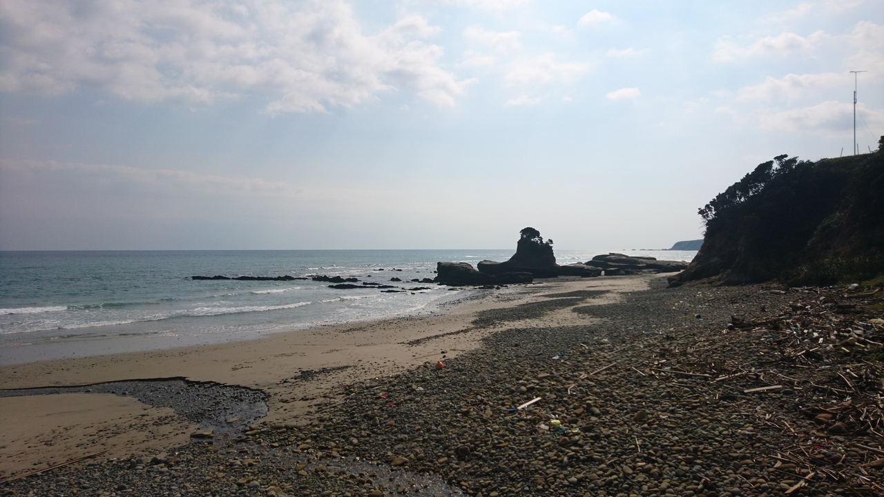 砂浜一帯に砂鉄を多くを含むことから「鉄浜」と名付けられたそうで、赤茶色でもしているかと思いましたが普通の海岸でした。しかし、砂鉄が多く取れたのはのちの鉄砲生産に