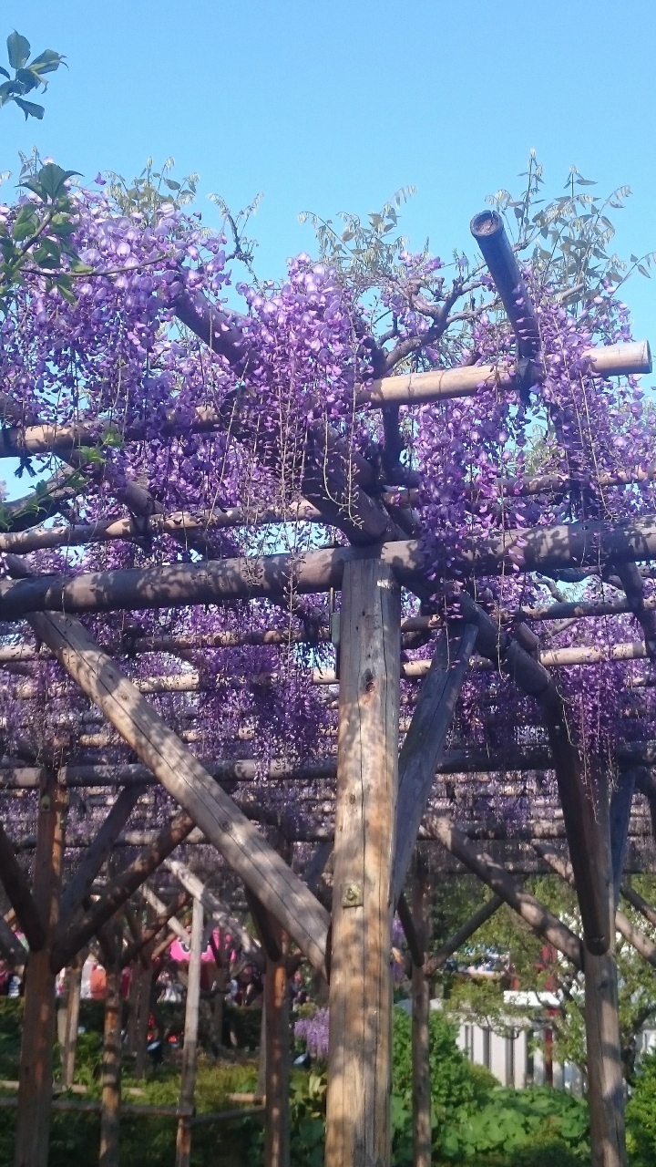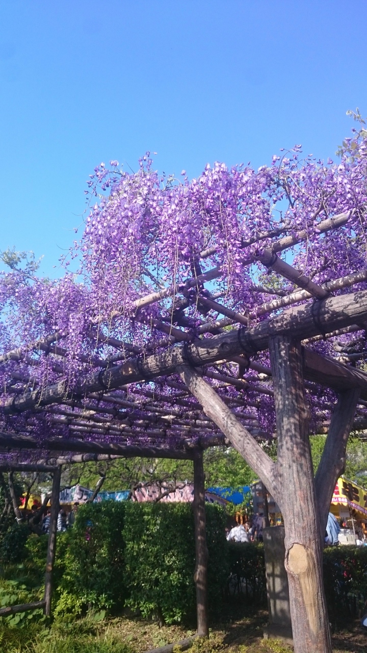 最寄りは亀戸駅と錦糸町駅ですが、ちょうどその中間位にあるため、結構歩きます。藤の時期に行きました。満開の藤はもう見事で、藤とスカイツリーの共演がとっても美しかったです。藤の名所のため土日は人混みでした。