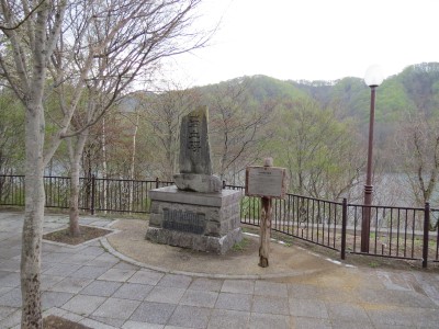 国道227号線にある広場というよりも駐車帯といった方が良い場所です。ここからは、鶉ダム建設によって水没した稲倉石古戦場跡を望むことができます。すっかり水に覆われてしまっていますが、どのような地形だったかを見下ろすことができました。ダム建設で史跡が消えゆくのは、忍びなく思いました。