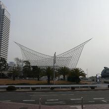 メリケンパークの中央、白いフレームの屋根が特徴的な建物で、神戸港開港120周年を記念して