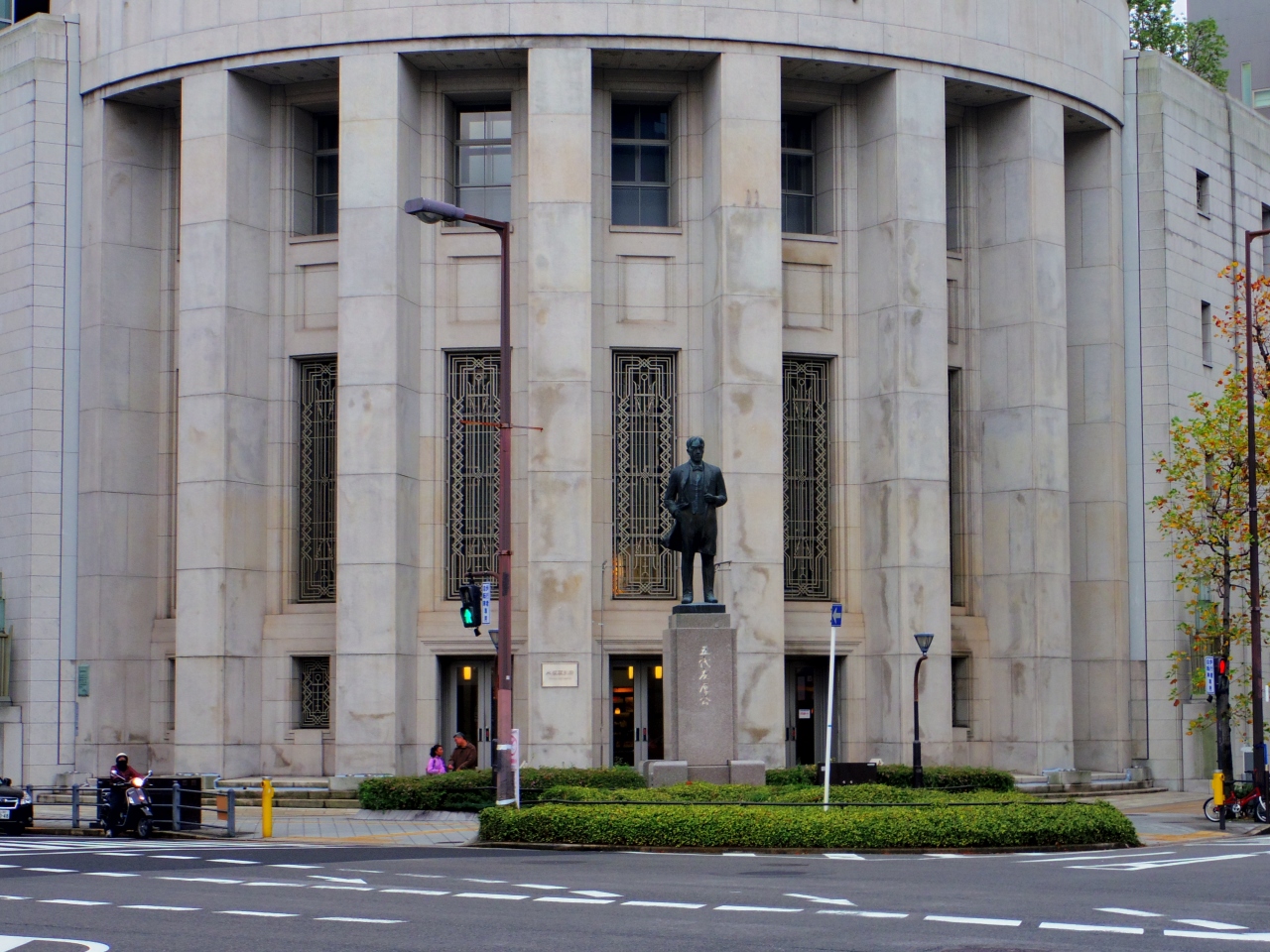 北浜といえば、東京の兜町と並ぶ証券取引所のある地名として有名ですが、大阪取引所の前には、五代友厚の像が建っています。