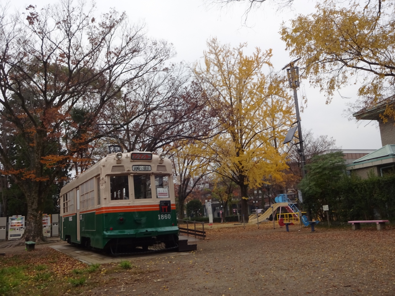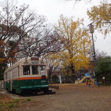 紅葉もきれいな公園内には以前使われていた市電の車両も置かれていました。