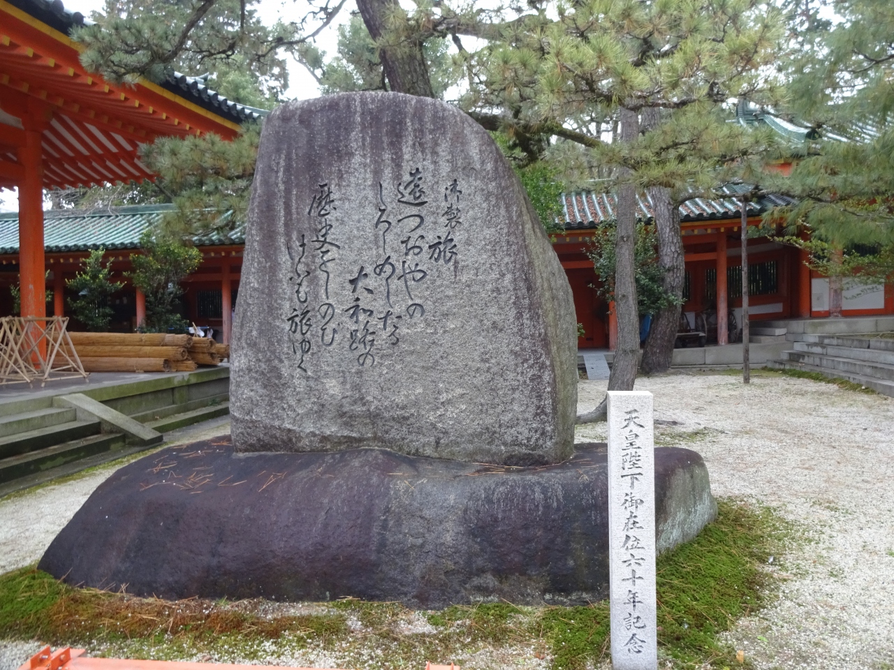 平安神宮の境内、「白虎楼」のそばに石碑があり、そこに刻まれています。