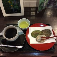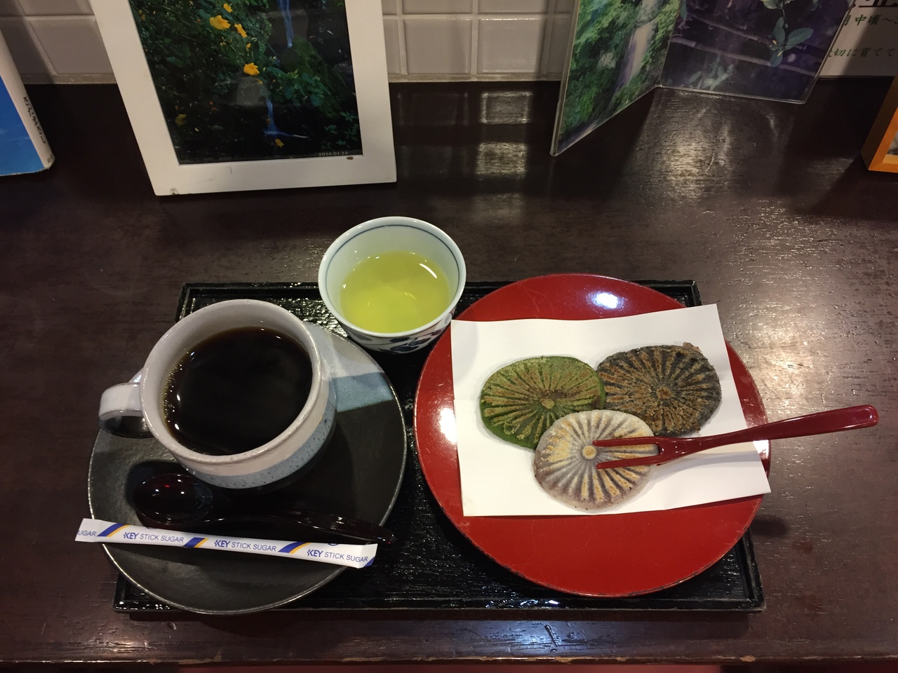 カウンター席からは 滝が見えたので そこでゆっくり 焼き餅を食べた。
