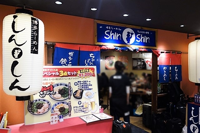 餃子セット(博多ラーメン+餃子)とshinshinセット(博多ラーメン+半焼き飯)を注文。