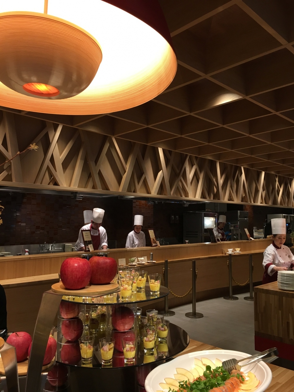 朝食と夕食のビュッフェを頂きました。これでもかとりんごを使った料理のメニューが並んでいますが、どれも本当に美味しい!味だけでなく見た目も美しく目にも楽しいです。名物のせんべい汁や帆立の浜焼きなども楽しむことができます。ステーキもその場で焼いてくれて、天ぷらも揚げたてを用意してもらえます。