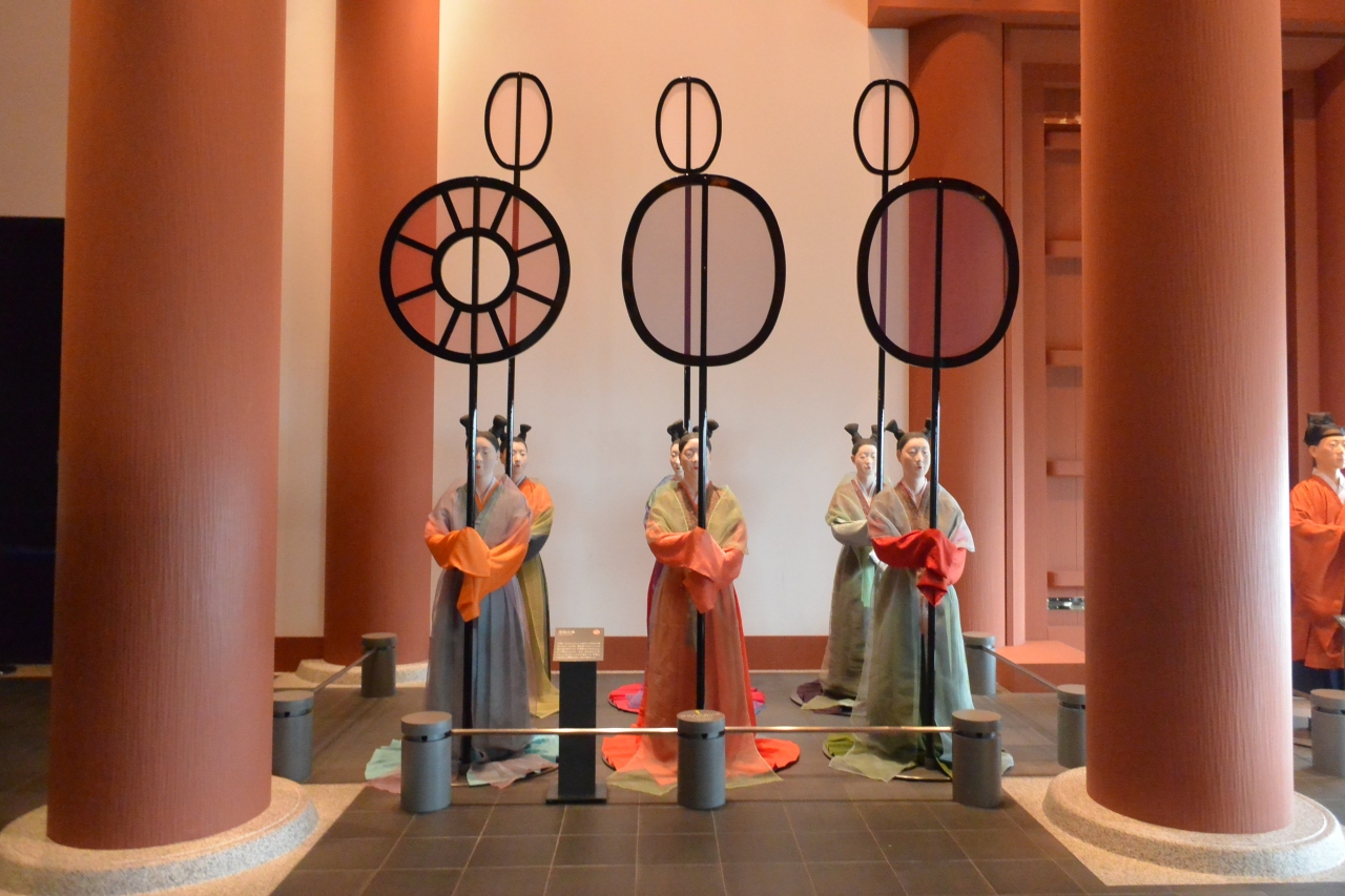 まずエレベーターで10階まで上がります。10階は古代難波宮などに関する展示でエスカレーターで降りるに従って、展示の時代も下っていく仕組みになっていて、展示もダイナミックでわかりやすい。考古学体験コーナーではバラバラになっている土器の破片をパズルのように組み合わせて完成させるといったゲーム感覚のものもあり、本来は子供向けコーナーのようですが、私以外にも大人の人が必死でパズルに取り組んでいました。大阪城や難波宮跡の公園も見渡せるのもよいですね。