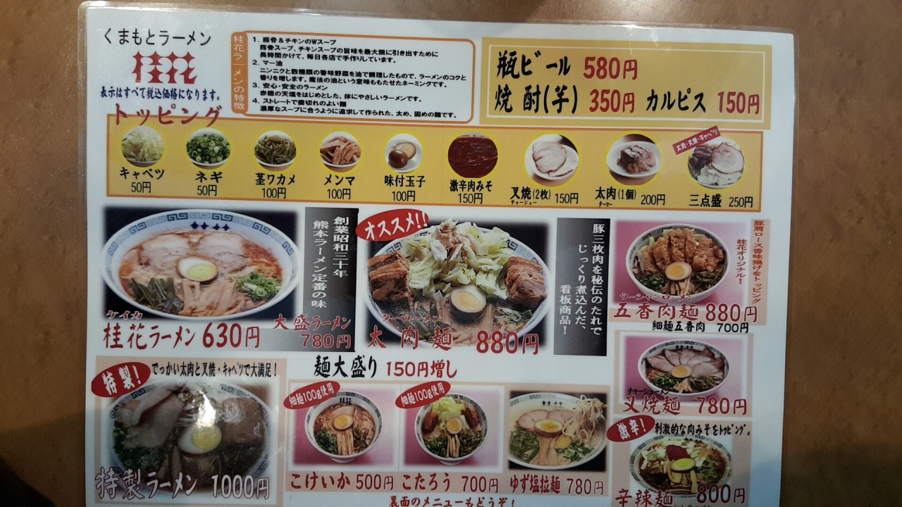 熊本城へも徒歩圏内で観光しながらラーメンが食べれます。