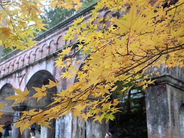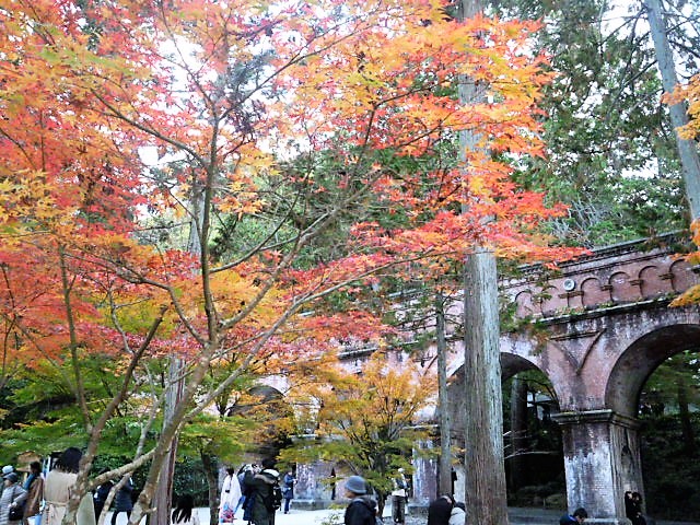 何回も[南禅寺 水路閣] に来ていますが、実は南禅寺⊇水路閣の経過が分かりません(`絶景かな、絶景かな`時代と明治時代)。でも、紅葉を観ながら歩くと`三門/法堂/方丈、そしてアーチ状水路閣`は違和感がないのです(不思議ですね~!) また、水路閣は京都を表している風景の一端ですが、各サスペンスTVは行過ぎ…推理と水路閣が無関係ですね(^^)。 水路閣と紅葉の両方を見ると紅葉が前/水路閣は後でした…違うアングルは来年の宿題です。