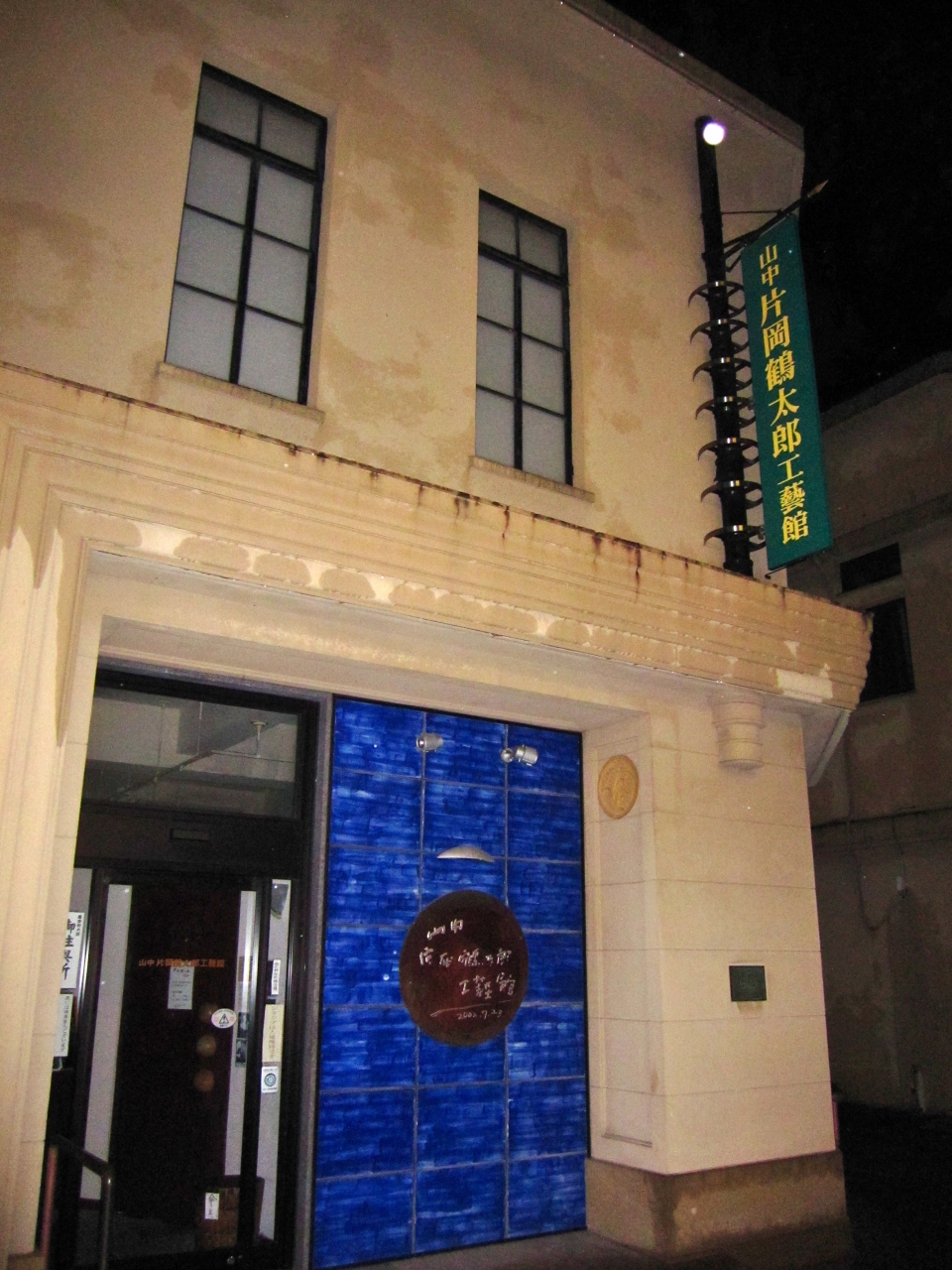 昭和6年山中温泉でおこった大火の後に漆器商「山岡商山堂」の本社屋として建てられた鉄筋コンクリート造りの建物を活用しています。この建物は文化庁の登録有形文化財に指定されているそうです。暖かみのある建物で山中温泉によくマッチしていて良いと思います。