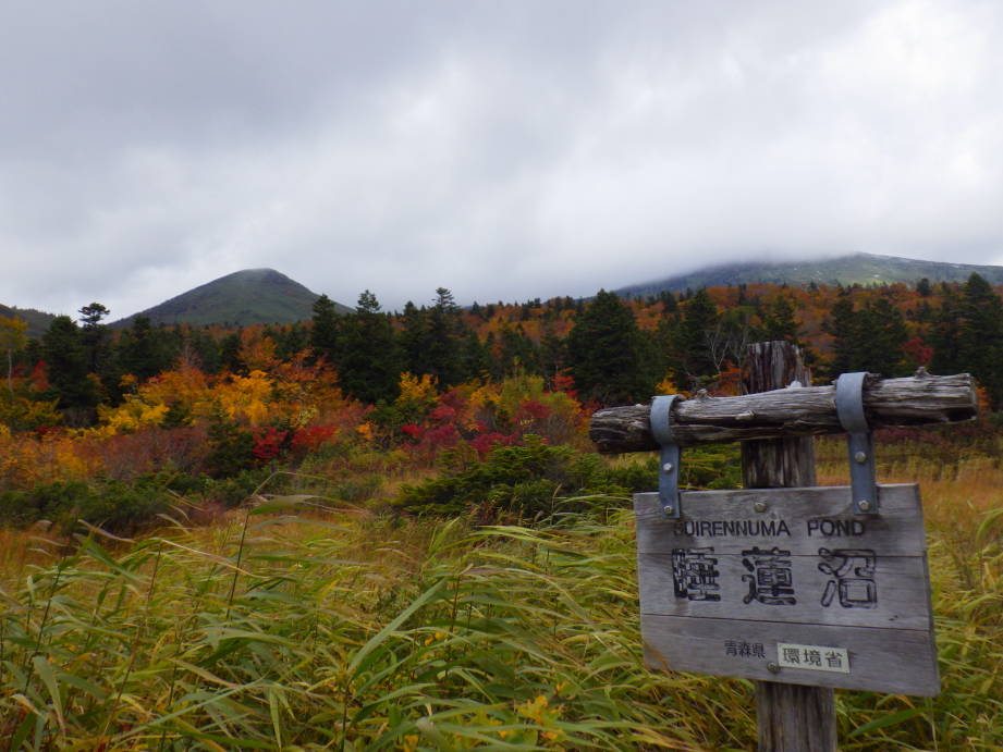 弘前から谷地温泉に向かう途中で車がたくさん停まっていたので、立ち寄ってみることにしました。紅葉が見頃を迎えていることもありカメラを構えた方々がたくさんいました。あいにく曇りではありましたが、沼を彩る黄、赤、茶、緑の木々がとても綺麗でした。
