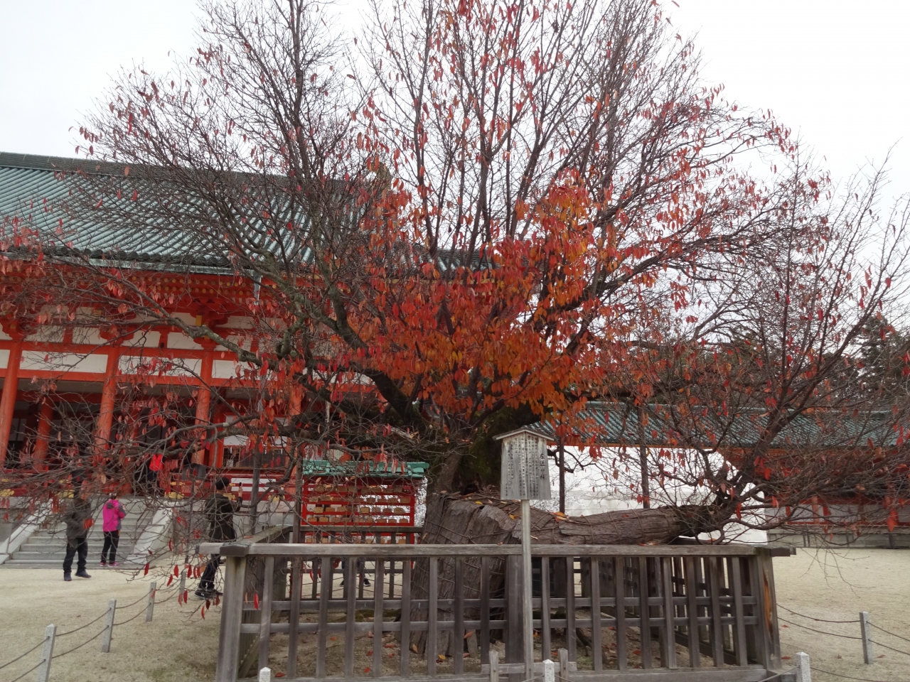 その社殿に向かって右にあるのが「左近の桜」こちらは春では内ので花はなかったが、名残の紅葉が見られた。