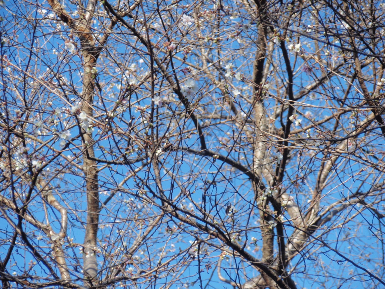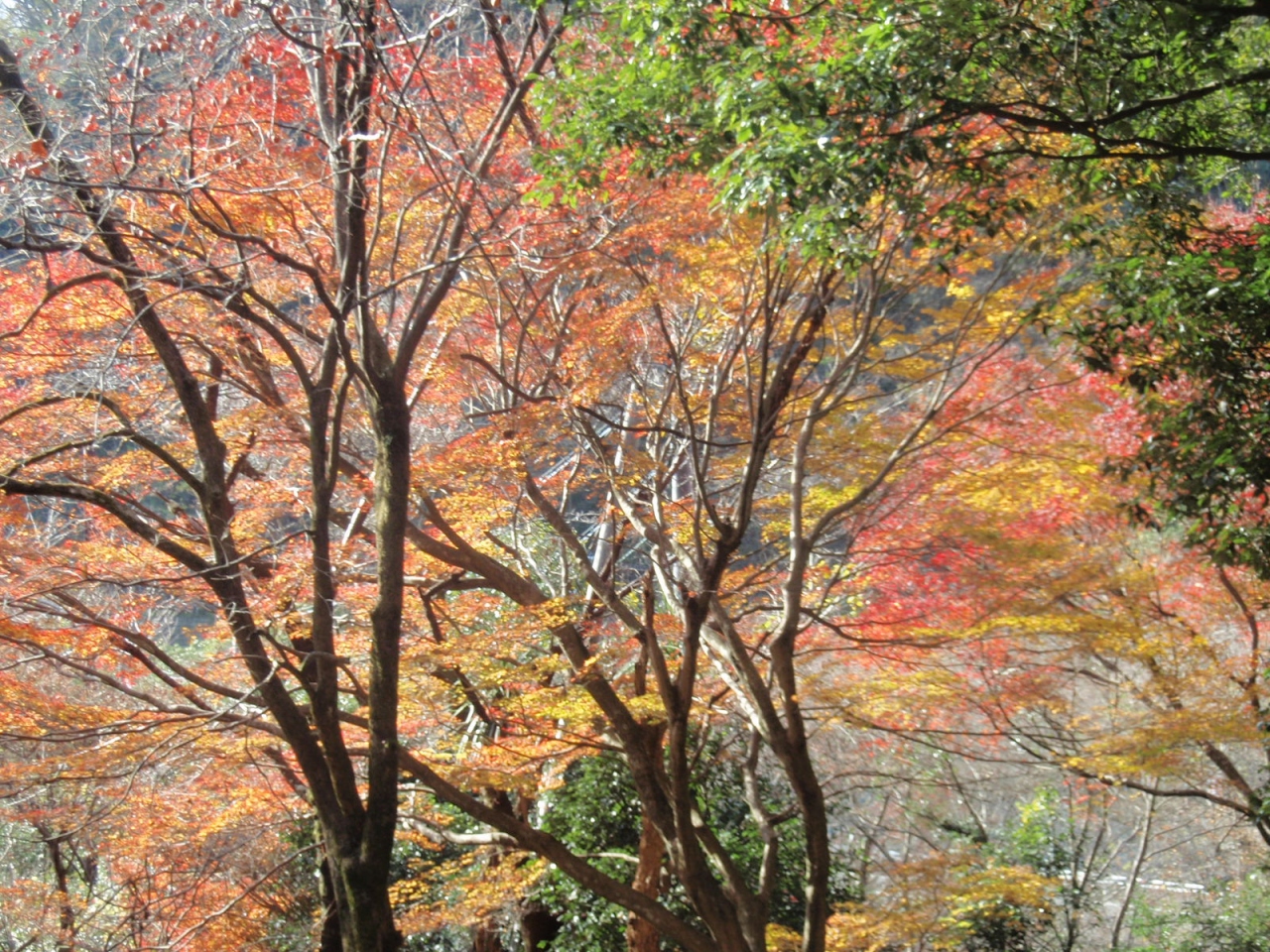 修学院駅から大比叡山に登り八瀬比叡口駅にくだりました。V字状の狭い道や、九十九折れの急な登山道を登り、時々展望が開けたところで遠望を眺め進みます。悪戦苦闘約2時間後、山頂に到着。ここは全く展望がありません。すぐ四明岳(ガーデンミュージアム)にもどり、ここからは京都市街が見下ろせますが、本日は小雪、展望もよくありませんでした。登山道中の紅葉は終了していましたが、八瀬と鷺森神社の紅葉は最盛期が過ぎていましたがまだ見られる状態でした。静寂の中で落葉の上を歩いた時に発するカサカサという音がなんとも言えません。都会の喧噪を忘れさせてくれます。おまけに八瀬では寒桜が1本満開で、薩埵峠、桜山以来久しぶりに見ました