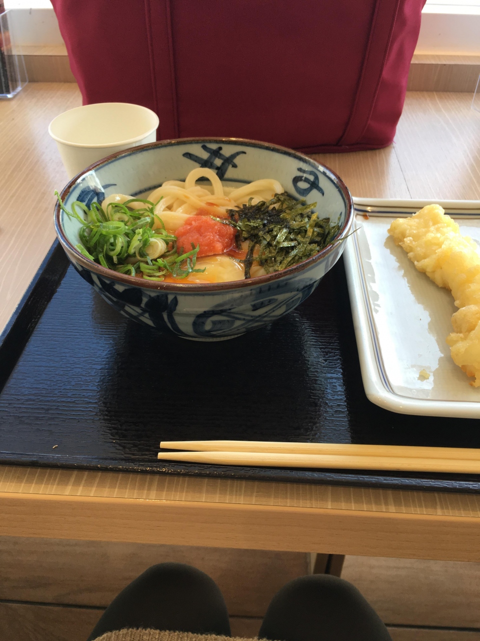 週末のランチ時間に利用しました。フードコートに入っていて、フードコートの入り口あたりにあります。手軽で値段も安いせいか、人気のようで10分くらい待ちました。フードコートは呼び鈴を渡されてまた取りに行ったりと慌ただしいですが、こちらは注文したらすぐ受け取れるので楽でした。子連れの方が多く、うどんの他に天ぷらやおにぎりもあるので少食の子供連れでも利用しやすいです。