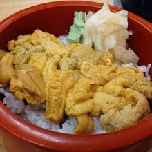 ウニはご飯を覆うボリュームがないのがちょっと残念。前夜に市内で食べたお寿司屋さんの下北ウニに比べるとややクセが気になりましたが、質としては十分美味しいと思いました。
