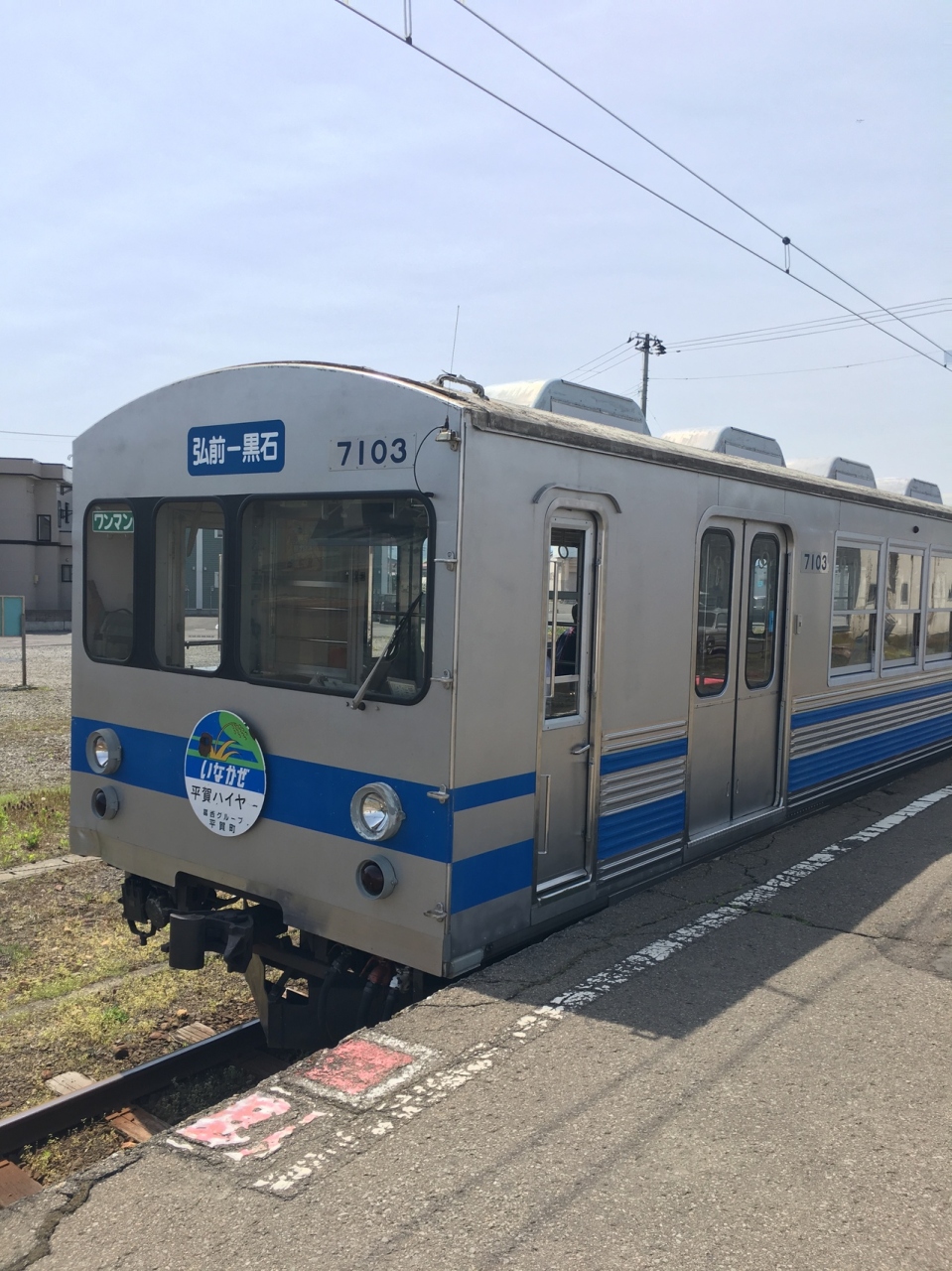 弘前~黒石を結ぶ路線です。地方に旅行するとその土地の風景を見ながら走るローカル線に乗るのも楽しみのひとつです。改札は自動ではなく有人改札。駅によっては無人のところもありました。電車に揺られながら津軽の美しい田園風景が目に焼き付いています。