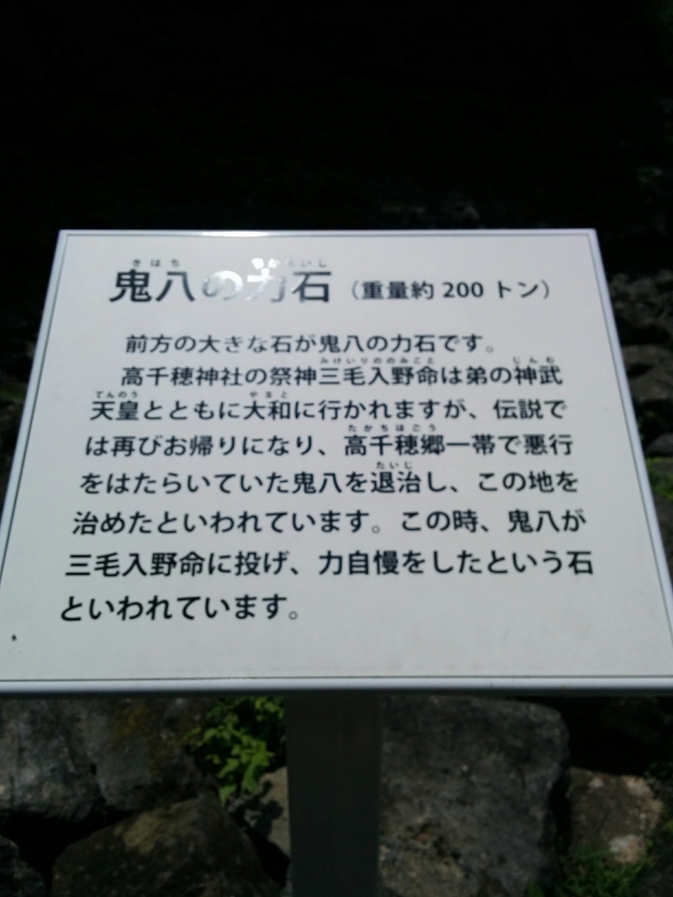 平成29年6月14日に宮崎県高千穂峡にある鬼八幡の力石を見学してきました。