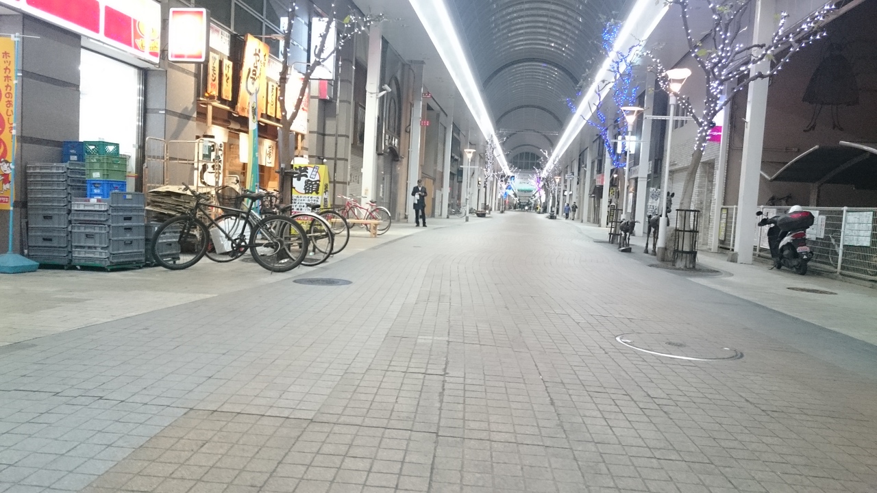 昼も夜もさほど人通りがおちついた商店街