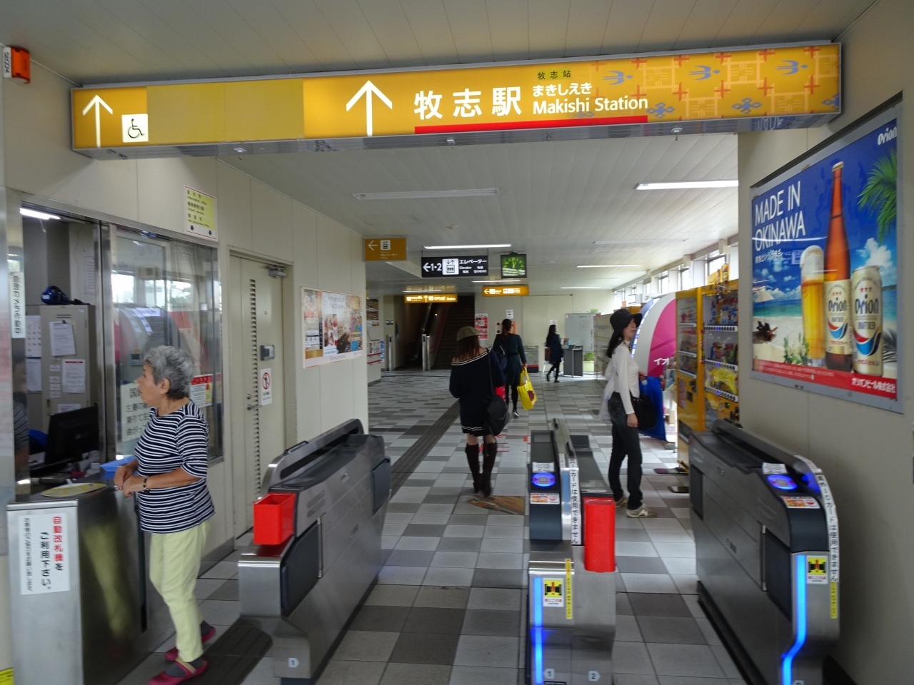 「ゆいレール」の牧志駅は、国際通り沿いにあり牧志第一公設市場からも10分程度に位置します。空港までも30分かからないので道路渋滞が気になる方は空港アクセス線として利用しているようです。列車内は意外に混雑しております。高架橋なので那覇の町が眼下に広がります。