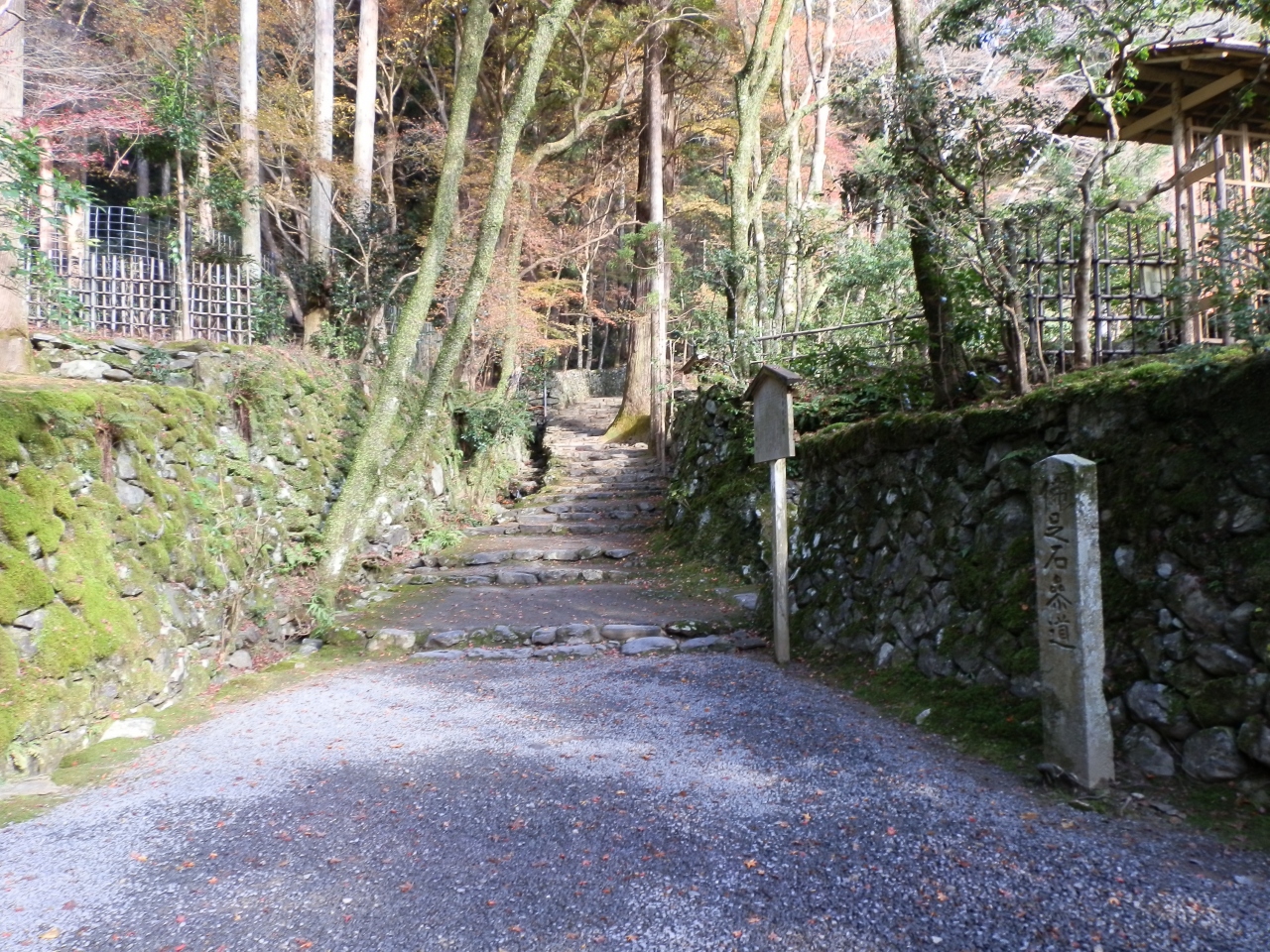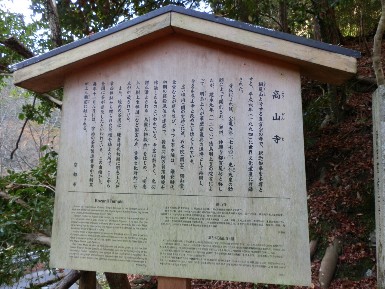 「京都 栂尾 高山寺 恋に疲れた女がひとり」この一節は名曲「女ひとり」に歌われた高山寺です。この響きに誘われ12月2日に訪れました。辺りのもみじの木は葉を落とし寒々とした光景でした。地面には縮れた紅葉が絨毯のように重なり合っていました。