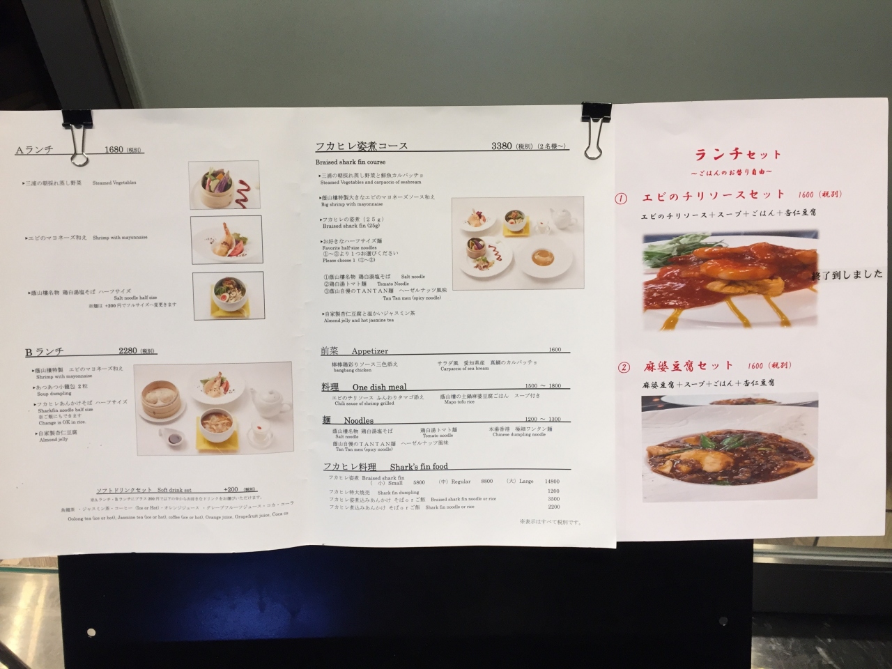 中華のランチコースもお手ごろな価格帯で、フカヒレなどのコースもあります。