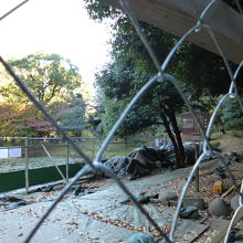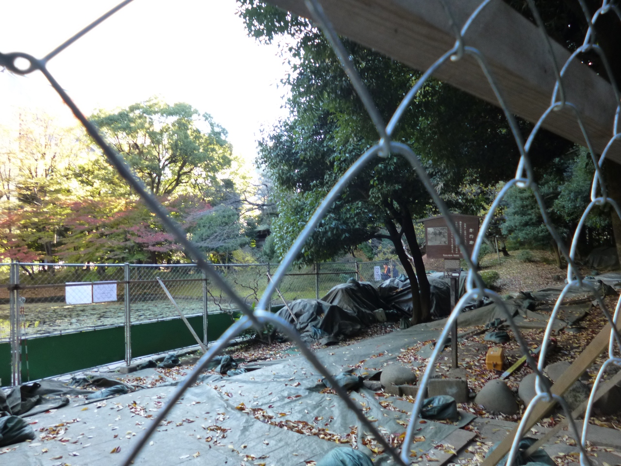 閉鎖中の正門である、東門付近にある、内庭と、後園である後楽園との間にあった門が唐門でした。戦災で焼失してしまったようです。また、現在は、調査が行われているようで、周辺がフェンスで囲まれていて、近づけませんでした。フェンス越しに除くと、基礎部分と案内板があり、写真が添えられているようでした