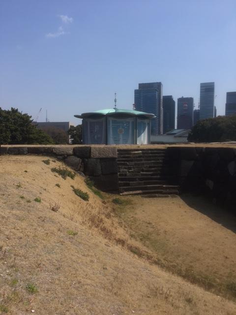 明暦三年の大火で天守閣が焼け落ちた後、その翌年に加賀藩前田家の普請でこの天守台のみが築かれました。つまり江戸城の天守閣は50年間だけしか存在しなかったことになります。文献などでその構造などは分かっているようですが、実物がないことにはその迫力が実感として湧きません。けれどこの天守台の石積み、東西約41メートル、南北約45メートルもあるそうです。間近で見たり、その上に立って遠くを眺めたりすると、なんとなく天守閣も想像されようかというものです。