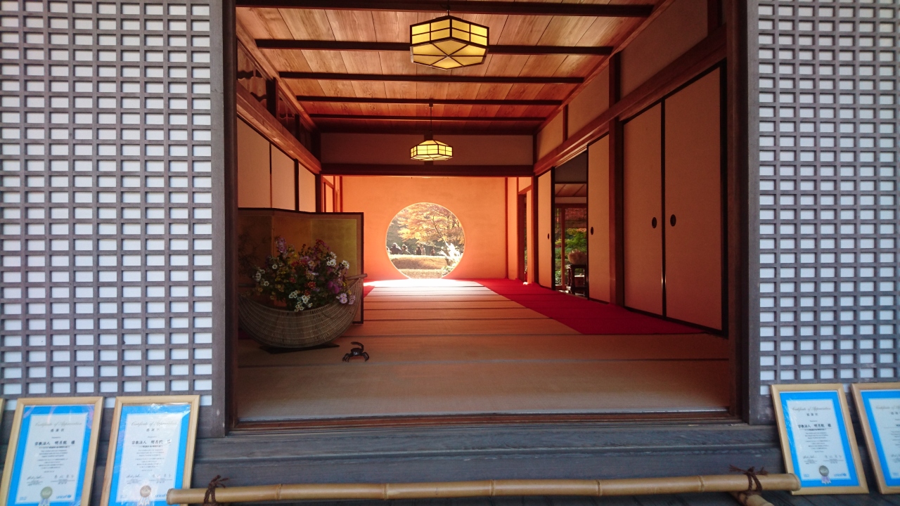 拝観料500円。丸窓から庭園が見られるスポットから写真を撮る為の列が40人くらい出来ていて10分くらい並んだ。丸窓から見える向こう側の庭園は更に500円支払う必要がある。