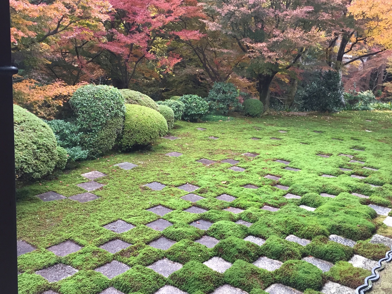 東西南北、趣向の異なる4つの庭がありますが、北庭の小市松は必見です。
