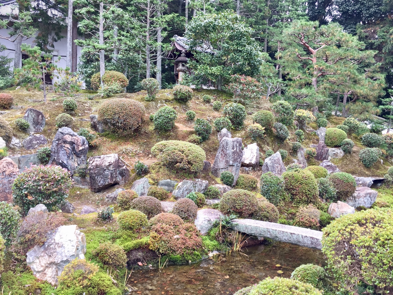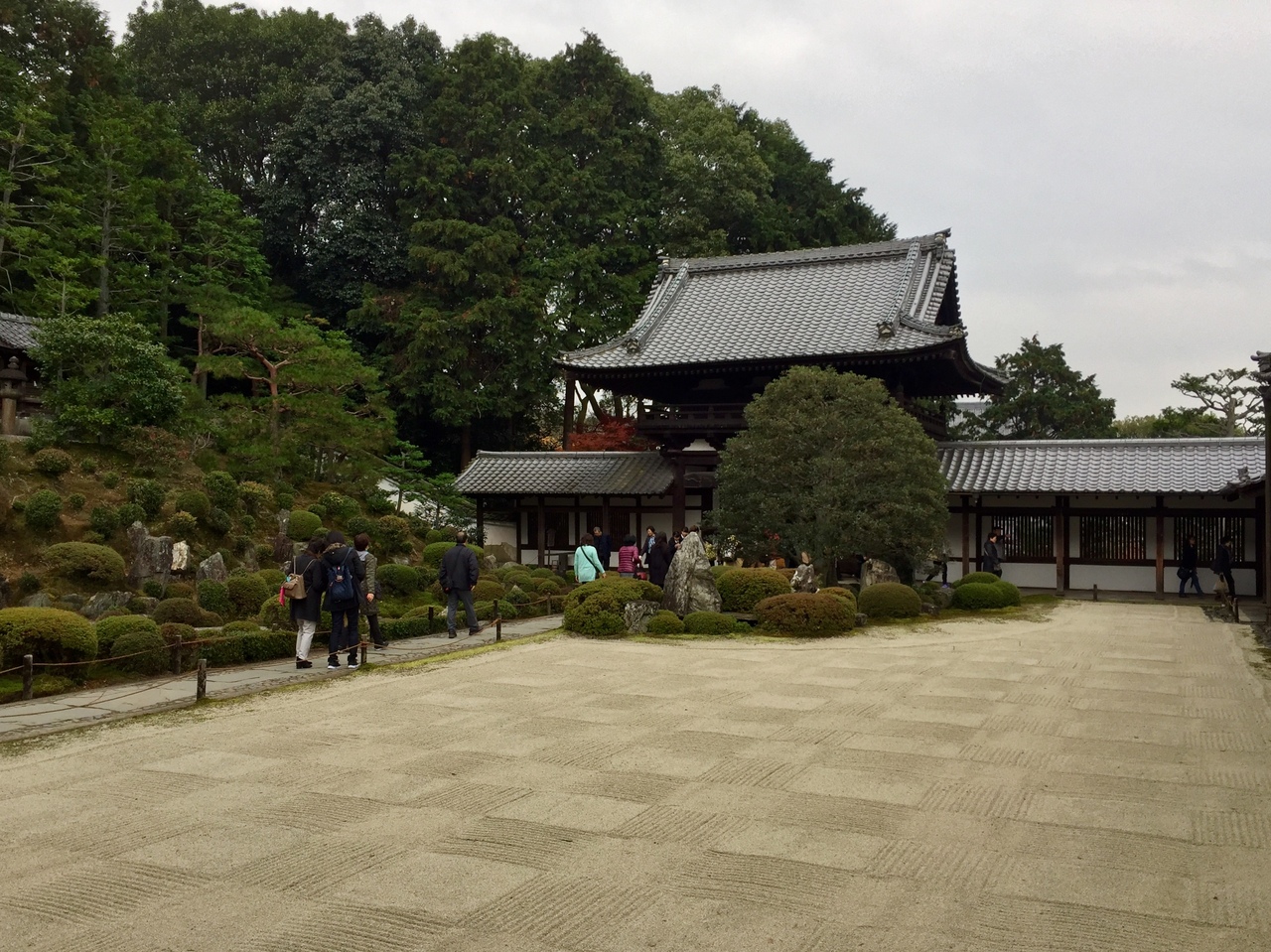 西側は枯山水庭園で、真っ白な砂利に描かれた市松模様が本当に美しい!