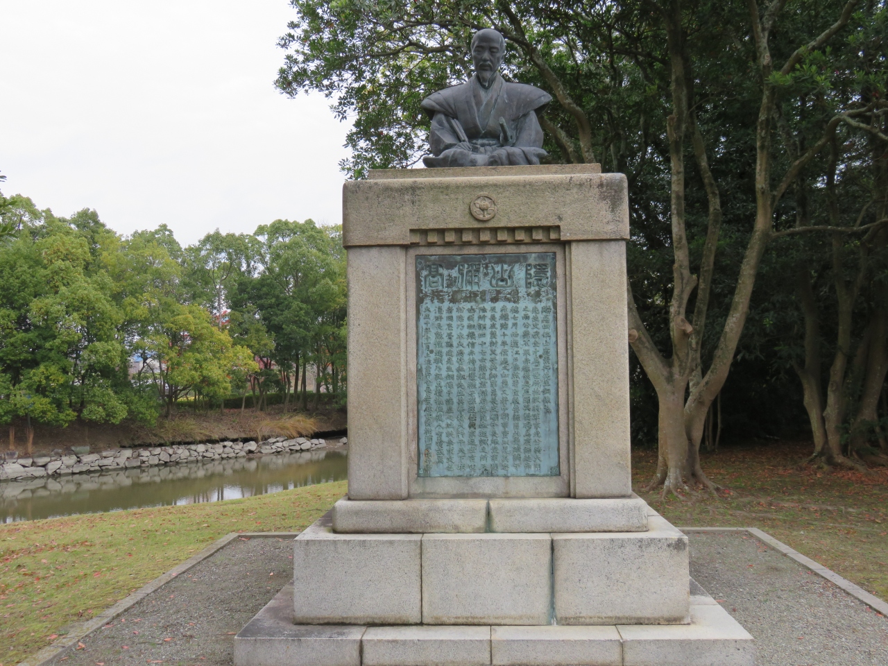 銅像は赤穂城址の目立たないところにひっそりと建っています。