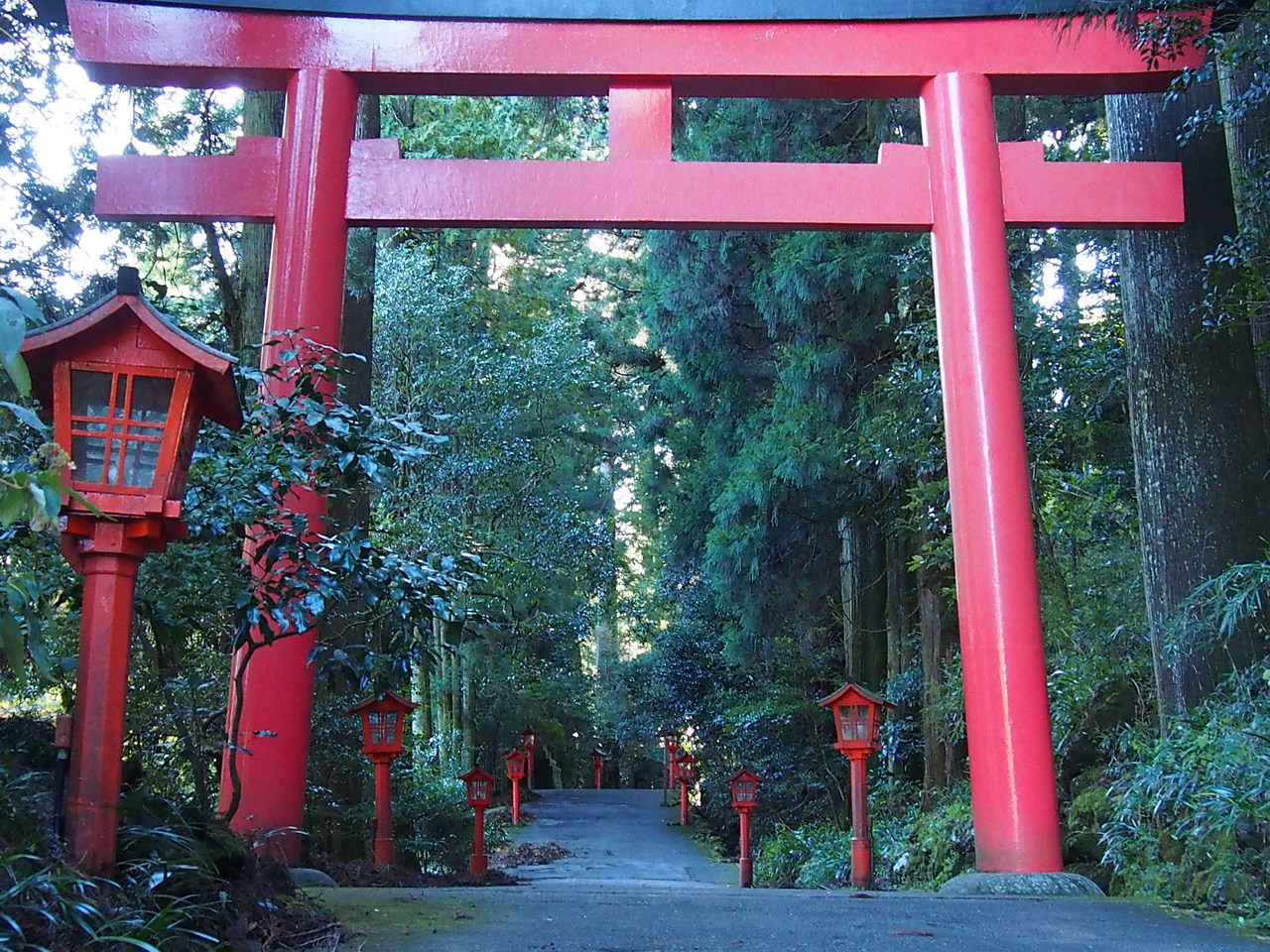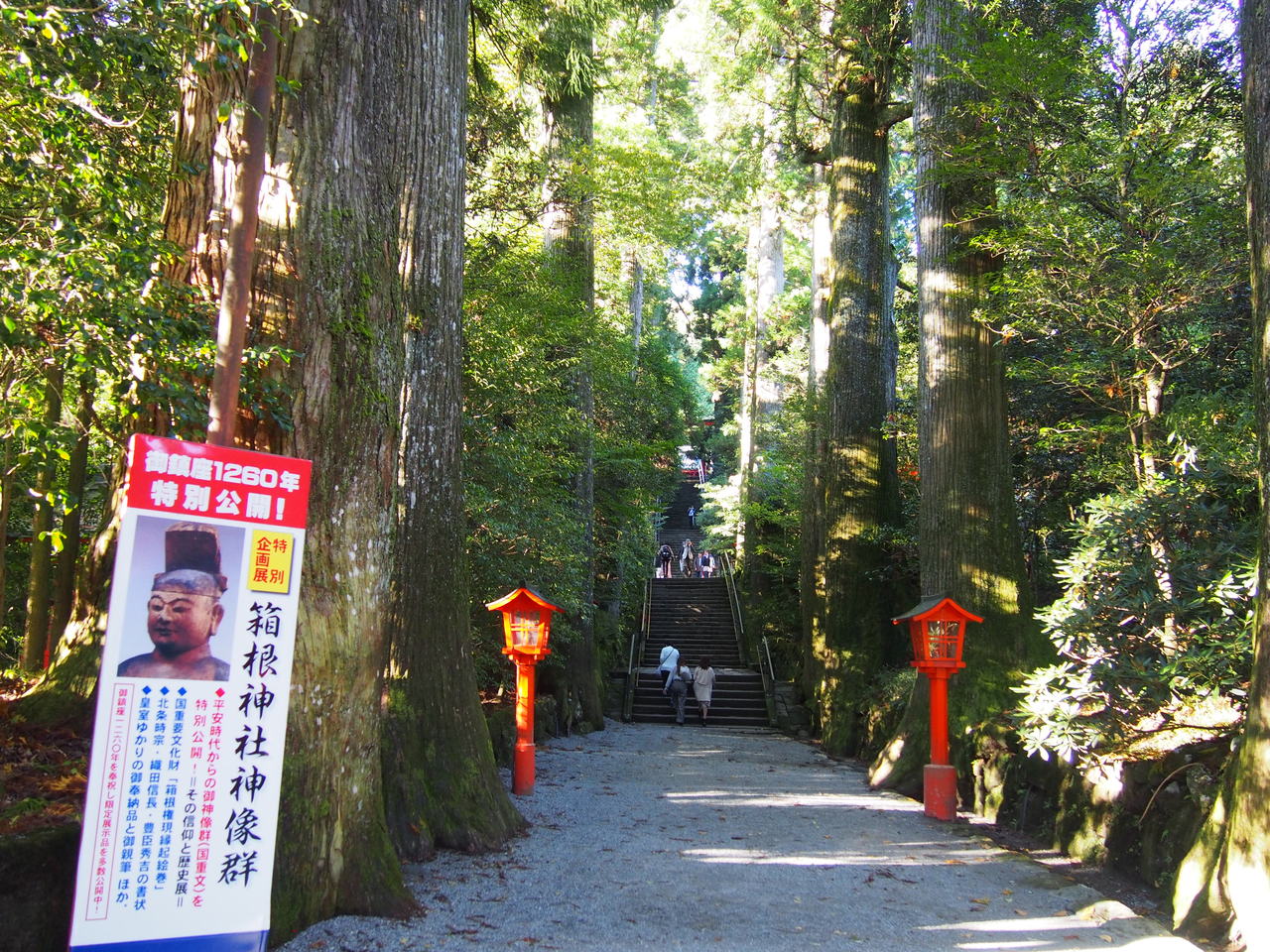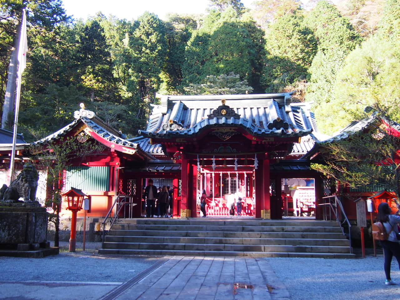 人気のパワースポットと言われるだけあって混んでます。樹齢300年以上と言われている木々を眺め89段の石段を登り境内へ、本殿は意外と小さいかなと思いました。参道や、石段の印象のほうが強いです。芦ノ湖へと続く階段を降りると鳥居周辺には写真を撮るアジア系の観光客で賑わってました。