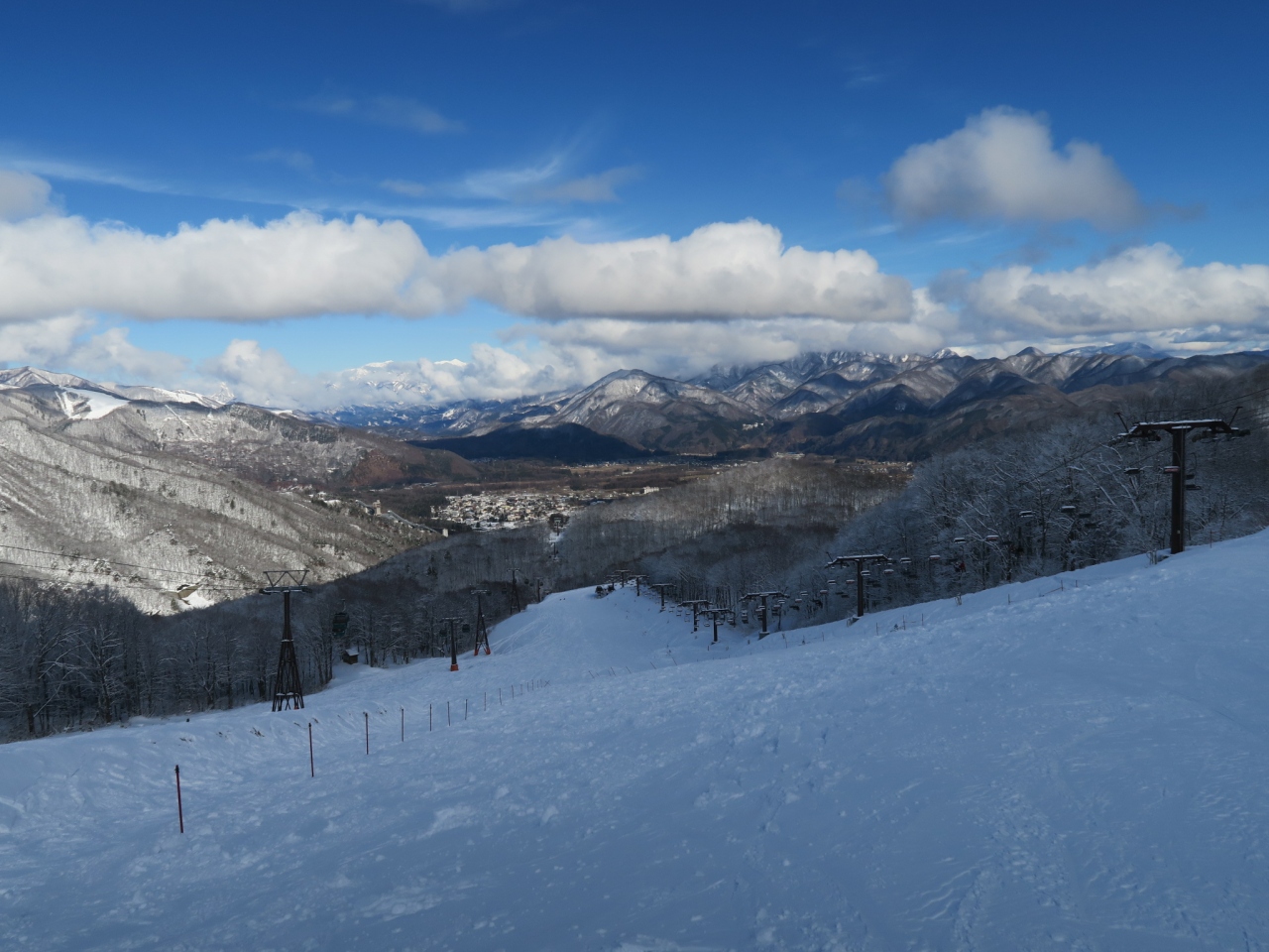 11月中旬から12月初旬では、この近辺だと隣の五竜、八方尾根、栂池だけとなるが、この中でもっとも滑走距離が長いのがこの47で、ルート4の下部が滑られないだけで、あとはすべて滑る事ができた。