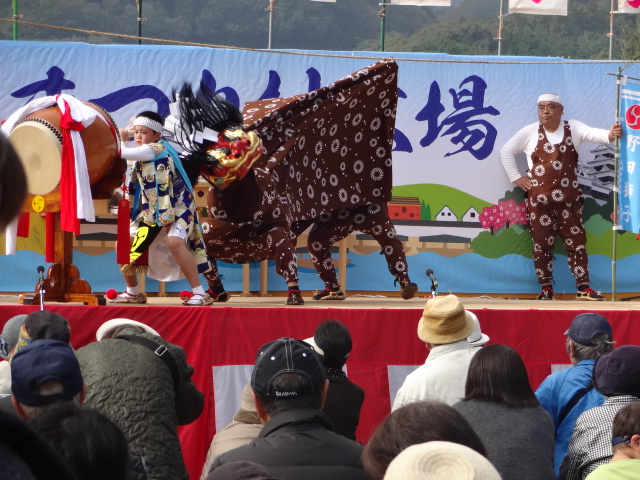 肱南地区では、赤レンガ館、おはなはん通り辺りでお祭りをしています。無料の渡し舟で、肱北の緑地公園へ。屋台あり、ジャンボトランポリンあり、カヌーもできます。ステージでは ししまい、太鼓、子供のパフォーマンス等、とてもにぎやかです。今年は天気が良かったので、とてもにぎわっていました。