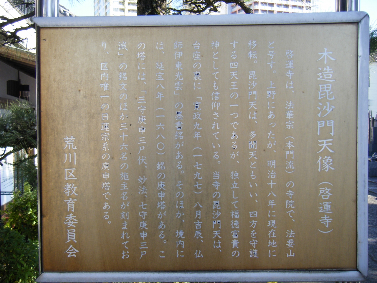 JR日暮里駅から徒歩7~8分ほど、諏訪台通り沿いにある法華宗の寺院になります。創建当初は上野にあったそうですが、明治18年に現在の場所に移ってきたとのことです。境内はかなり新しい雰囲気で、本堂もとても綺麗な造りでした。私以外に訪問客はおらず、とても静かな雰囲気でした。木造毘沙門天像があるとの事でしたが、見ることはできませんでした。