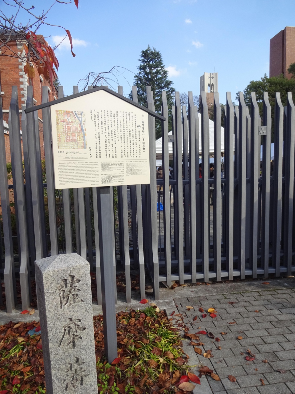 明治期に鳴戸、藩邸は没収され、後に京都府→民間に売却(新島襄が購入)→同志社大学となったことが側の案内板に書かれていました。