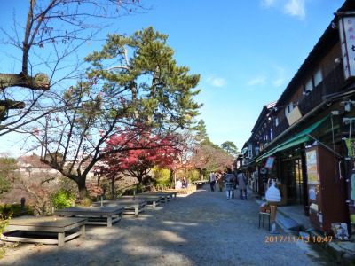 兼六園の散策を堪能してお茶屋さんが並んでいる入口付近に戻って来ると目の前に金沢城が見えました。さっそくお城を目指して行くと立派な橋が、道路をまたいで建っていました。その大きさや高さに感動します。金沢城をバックに撮影スポットとしても人気の場所でした。
