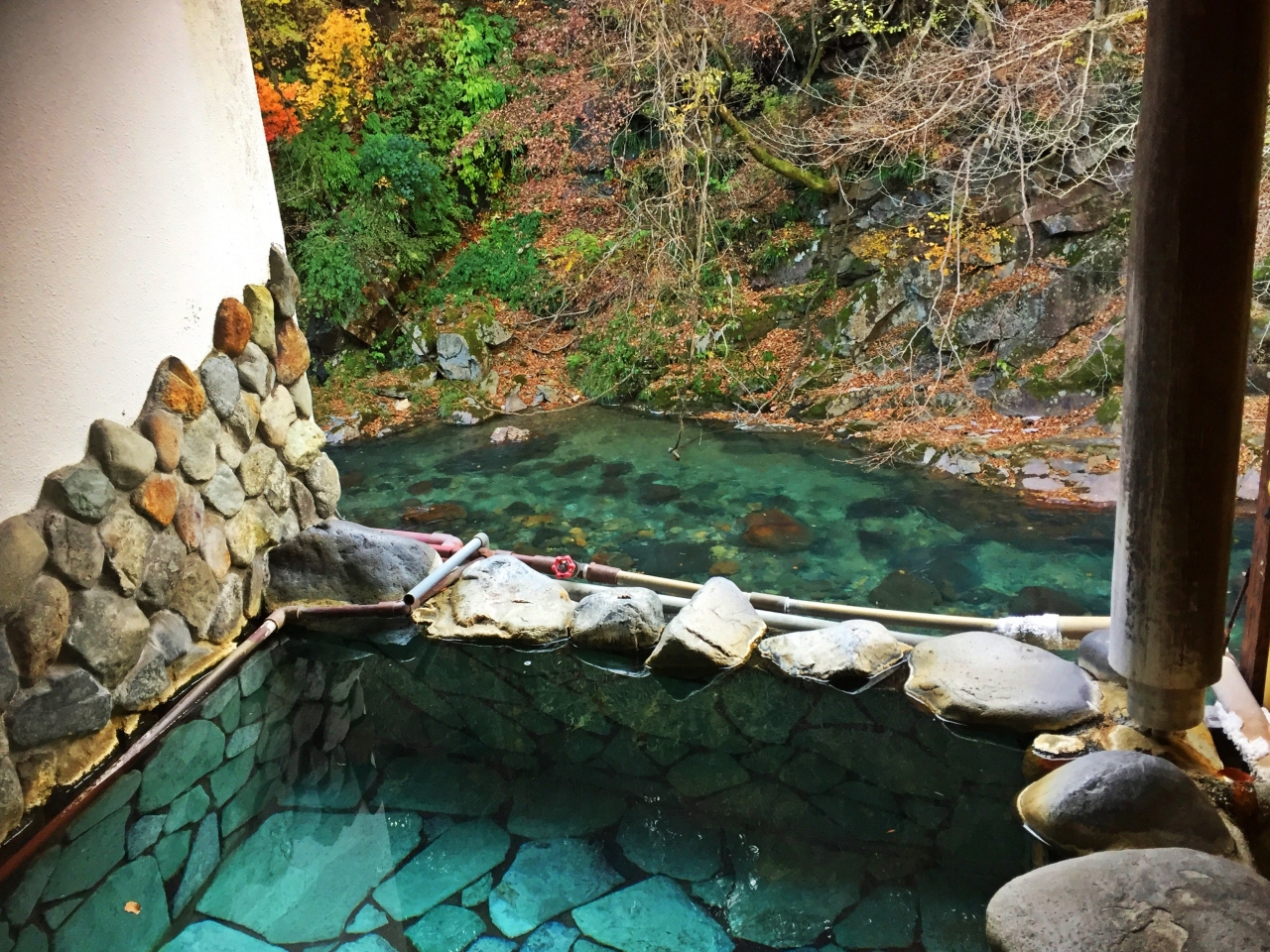 秋に四万温泉などの川沿いの温泉に泊まるならば、+1000円してでも、川沿いのお部屋を予約してみて。