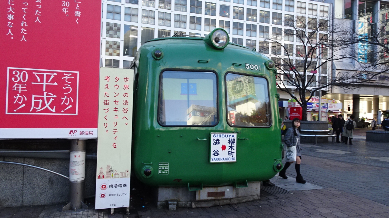 JR渋谷駅とスクランブル交差点の間にある緑色の車両。ハチ公像の向かいにあり、ハチ公と並んで待ち合わせの人がたくさんいます。テレビのインタビューが行われることも多く、ぼーっと立って周りを見ているだけでも楽しいです。