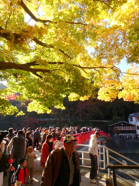 橋の上は人でごった返しているのであまり景色を楽しむ余裕はありませんでしたが、それでも川と紅葉のコントラストは見事でした。