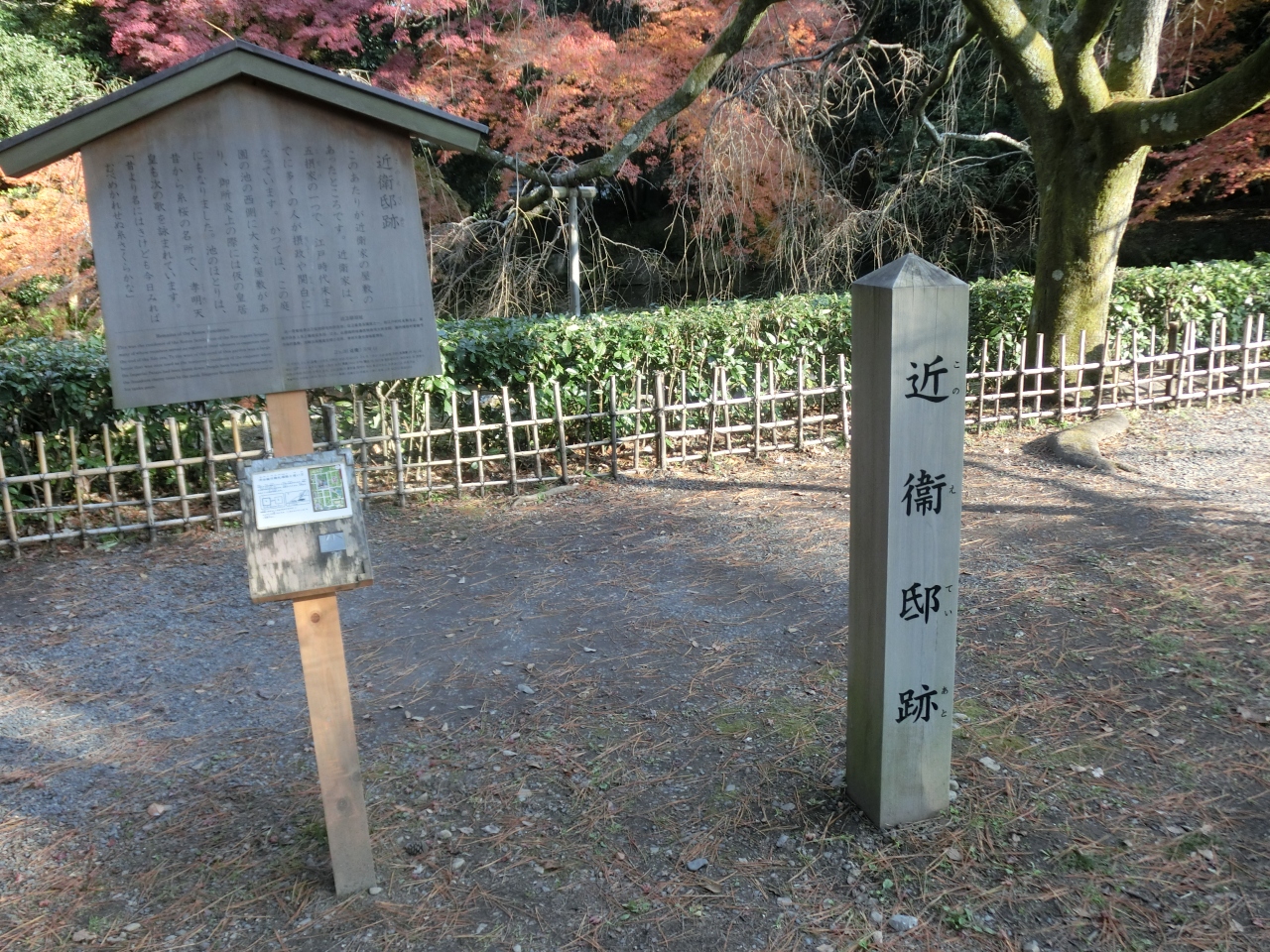 今出川門をくぐってすぐ右手の森の中ほどに近衛邸の跡と近衛池がある。