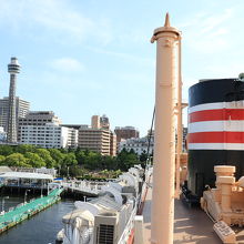 山下公園の近くにあります。現役で使用されていた時の様子が展示されており、当時の航海に思いを馳せることができます。湾の中にはありますが、海の上に係留されているので、大桟橋の客船ターミナルを横から眺めることができ、山下公園などとは一味違った景色を楽しめます。