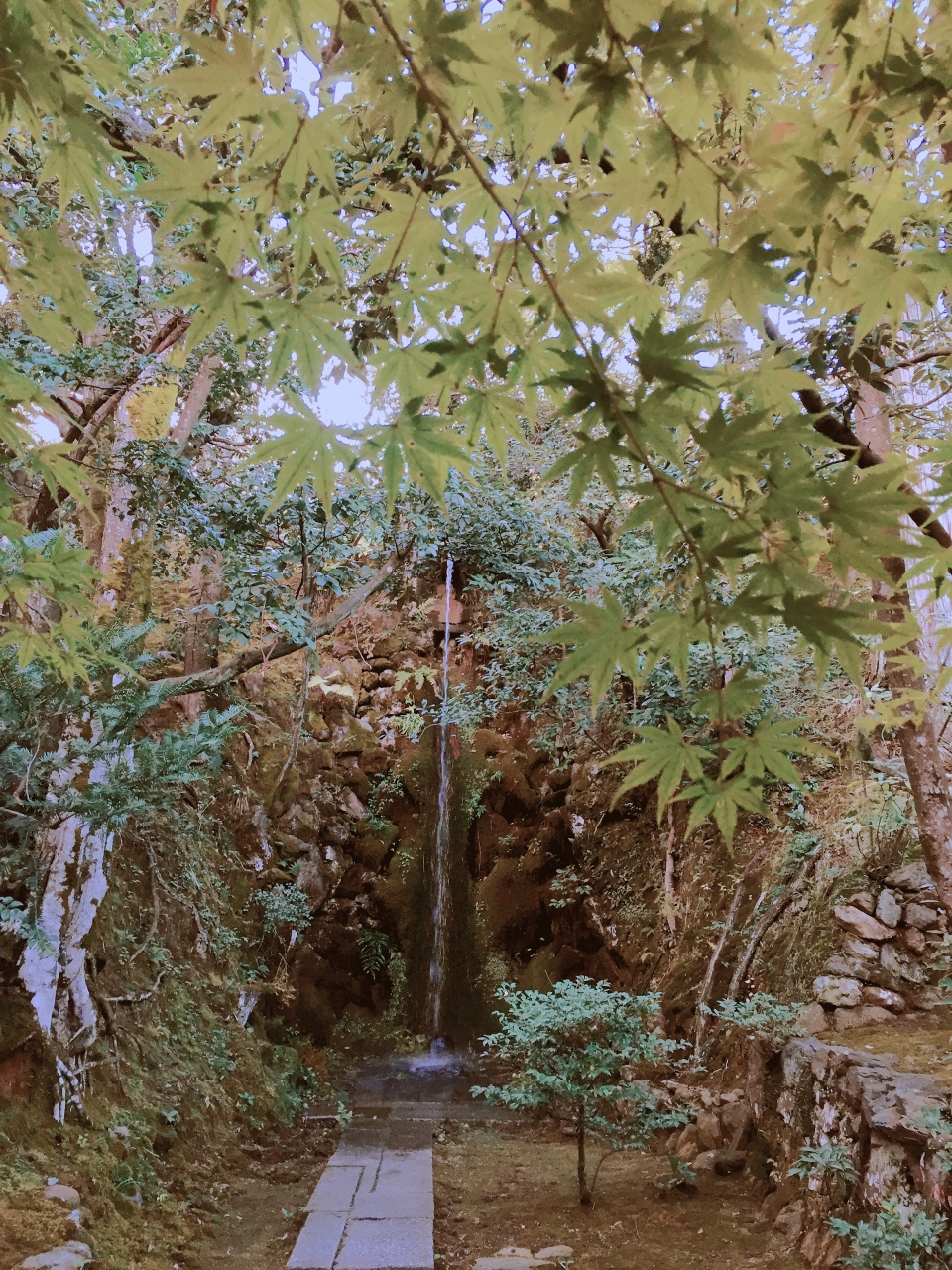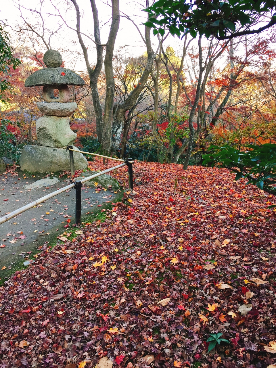 1回目は嵐電の嵐山駅から、竹林の道を通って徒歩20分。 竹林の道が混み合ってなければ20分で行けますが、紅葉の時期はちょっと難しいかもしれません。 10月に訪れた時はまだ紅葉が始まっていなかったので、木々は青々としていました。 それでもとても風情があり、拝観受付終了間際に入ったのでほぼ貸し切り状態で見学することが出来ました。 その時、紅葉がキレイな時期に絶対に再訪したい!と誓ったのですが、2回目に行った時は残念ながら1週間ほど遅かったようで、もうもみじはほとんど散っていました。 もみじの絨毯もそれなりにキレイでしたが、JRの京都いこう!のポスターで見るような素晴らしい紅葉が見てみたいので、また来年リベンジしたいと思います。