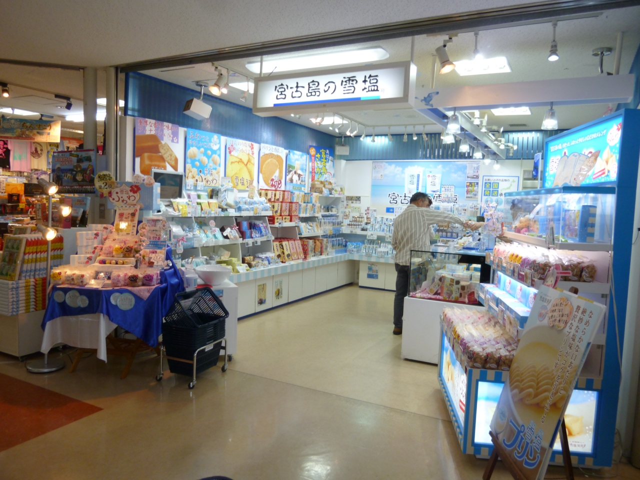 看板商品の雪塩を使ったお菓子や調味料等多くの種類の土産品を綺麗に陳列して売っています。搭乗便が大幅遅延していたのでゆっくり思いがけず商品を見ることが出来ました。