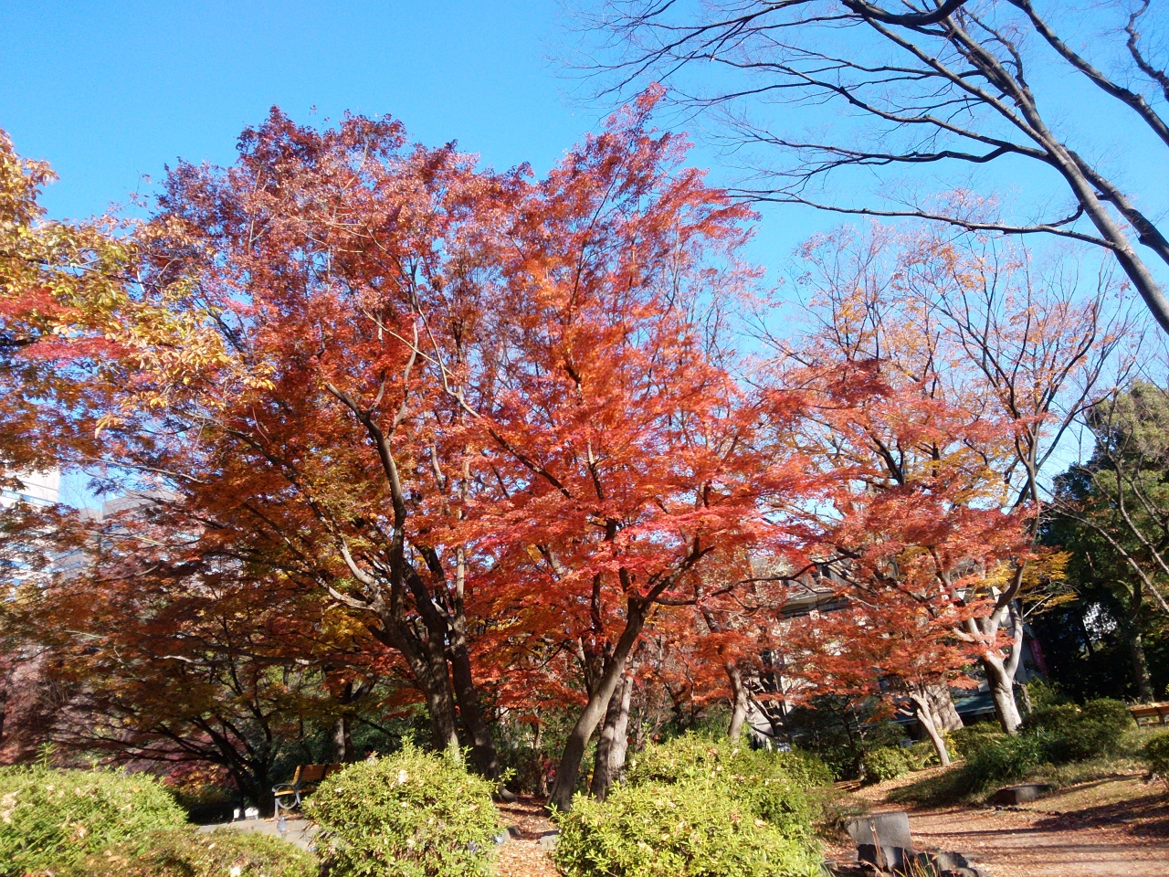 紅葉がキレイな季節ということもあり、久しぶりに日比谷公園を散策しました。公園内には紅葉を鑑賞する観光客の団体がたくさんいました。赤色、黄色、オレンジ色などに色付いた木々はとても鮮やかでキレイでした。既に葉が落ちた木もたくさんありましたがまだまだ見ごたえはあります。
