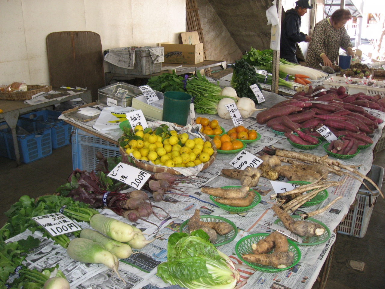鎌倉野菜直売所、パン屋さん、食品店、シフォンケーキ屋さん等々、色々入っています。今日はヤマトイモ、からし菜を買いました。鎌倉野菜を主に使ったレストランをよく見かけます。新鮮で珍しい物があるようで結構遠くのレストランでも聞きますね。