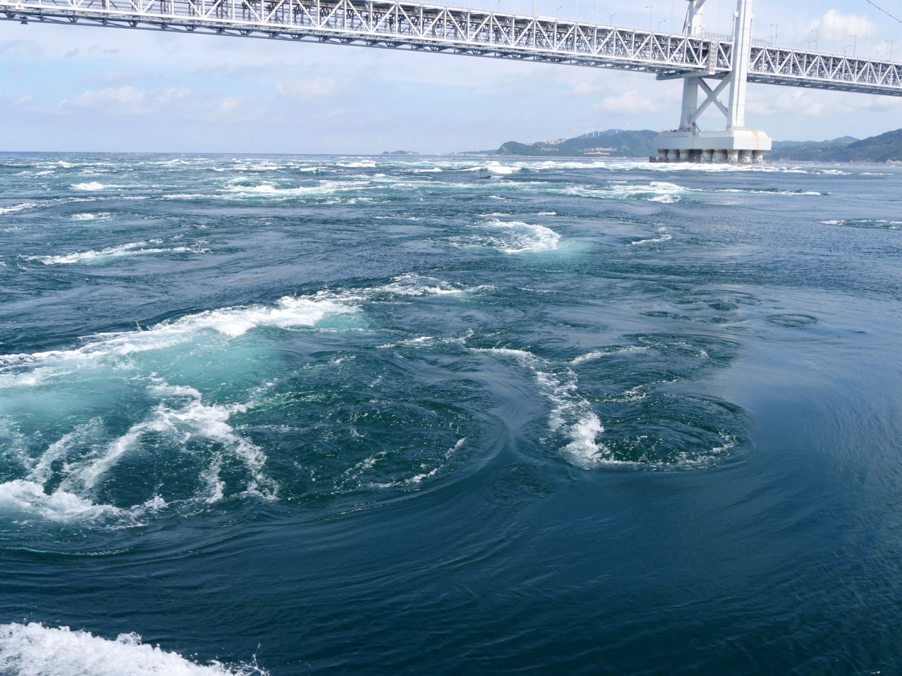 海に段差があり,そこを急流のように海水が流れて渦を巻く.船から見るうずしおは海面下1m位まで沈みながら渦を巻く.見ていて怖いくらいだ!1回目に乗船した2013年3月は最高!以前は1500円 いまは1550円 今回は大潮だったがたいしたことなかった.やはり満ち引きの多い時でないと期待外れもある.