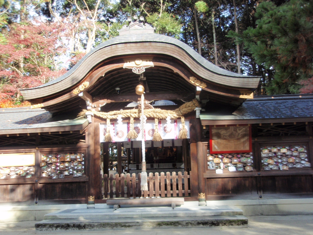 比叡山登山の集合場所が鷺森神社でした。貞間年間(859年~)の創建で祭神はスサノオノミコトです。鳥居から本殿までの参道両側に紅葉が見られました。最盛期は過ぎていましたが、まだ充分堪能できる状態でした。今年の京都の紅葉は昨年より色合いが良いように感じました